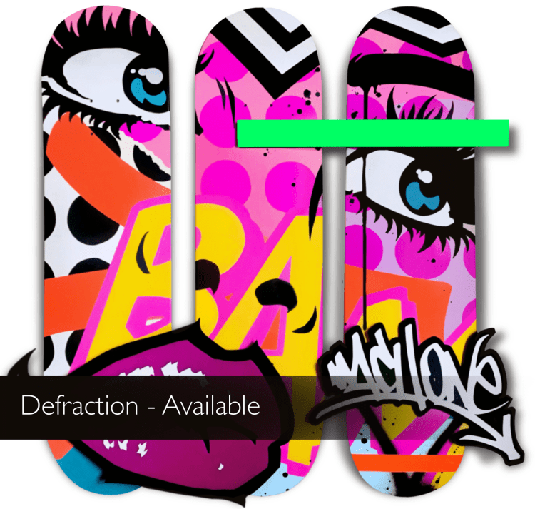 MachONE continues in that vain, Real SkateBoards, Original Urban Art, Unique Designs using Spray Paints and on occasion 3D elements arriving ready to hang, putting Street Culture in Gallery settings.